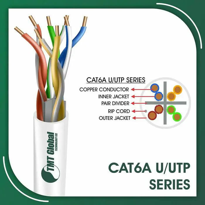 TMT Global cat 6a color coding Category 6a Data Cable 305m are Manufactured Tested and Complied with IEC 60332-1-2 EN 50173-1:2011 ISO/IEC11801:2011(Ed. 2.2) ANSI/TIA/EIA-568.2-D IEC61935-2:2010(Ed.3.0) EN 50173-2:2007 including Amendment A1:2010 Requirements for Patch Cord Assemblies and Provide High Performance levels for structured cabling systems.