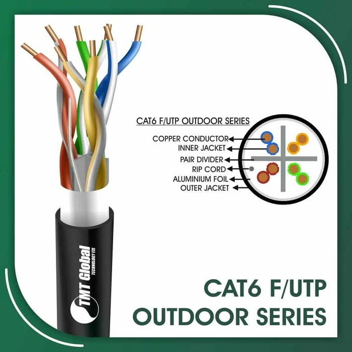 TMT Global Technology LTD aims to provide the best quality products, including structured cabling systems, copper and fiber optics range, access control systems, gate automation, lighting control systems, PIR motion sensors, UHF long-range readers, automatic parking solutions, SMATV systems, audio video intercom systems, audio visual systems, and public address systems. Industrial and building automation cables and accessories lead to customer satisfaction and reliability. All TMT Global products meet or exceed rigorous industry and regulatory standards for quality, reliability, and efficiency. From design and fabrication to finished product assembly, each phase in the manufacturing process is rigorously monitored and measured to ensure the highest quality, durability, and operating excellence.Cat6 f utp 6xxx2B PE Outdoor Cable 23 awg 4 pair 305m