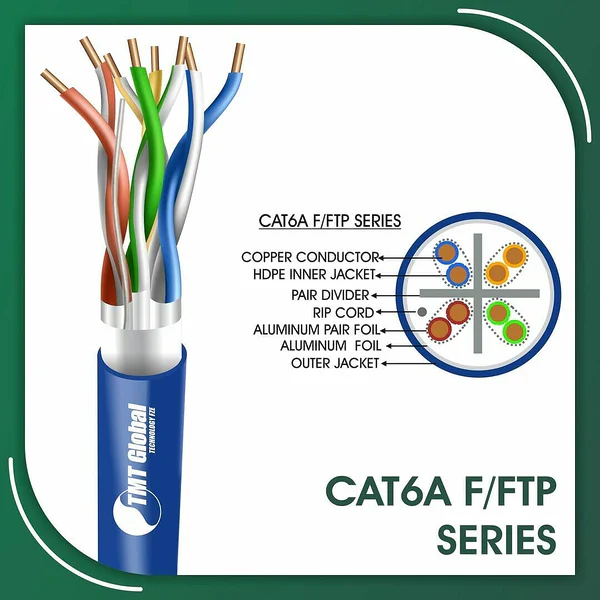 TMT Global cat6a Network Cable 23awg twisted Pair f-ftp LSZH 305m cat6a fftp Network Cable 23awg twisted Pair LSZH 305m are manufactured tested and complied with ANSI/TIA/568.2-D CENELEC EN 50288-5IEC 61156-5 (ISO/IEC-11801 Class -Ea). Cat6a Series is Designed to ensure the highest levels of performance, reliability, and longevity, and are ideal for large enterprise and small business.