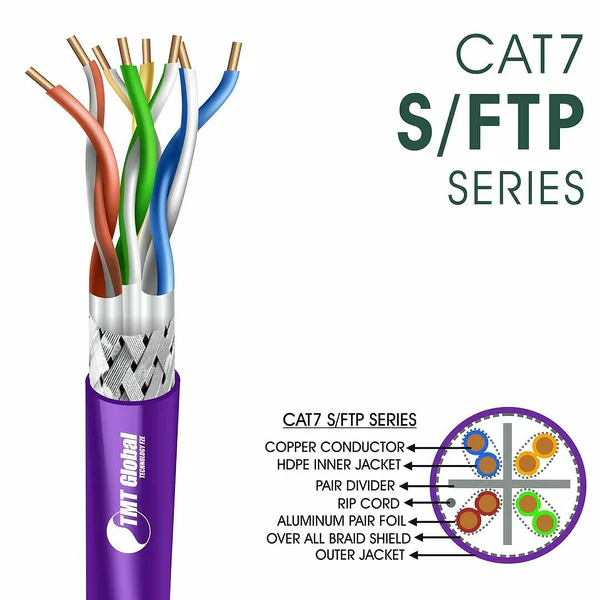 TMT Global  cat7 305m Network Cable 23awg tmt red sftp LSZH are Manufactured Tested and Complied with IEC 60332-1-2 EN 50173-1:2011 ISO/IEC11801:2011(Ed. 2.2) ANSI/TIA/EIA-568.2-D IEC61935-2:2010(Ed.3.0) EN 50173-2:2007 including Amendment A1:2010 Requirements for Patch Cord Assemblies and Provide High Performance levels for structured cabling systems. cat6a cable